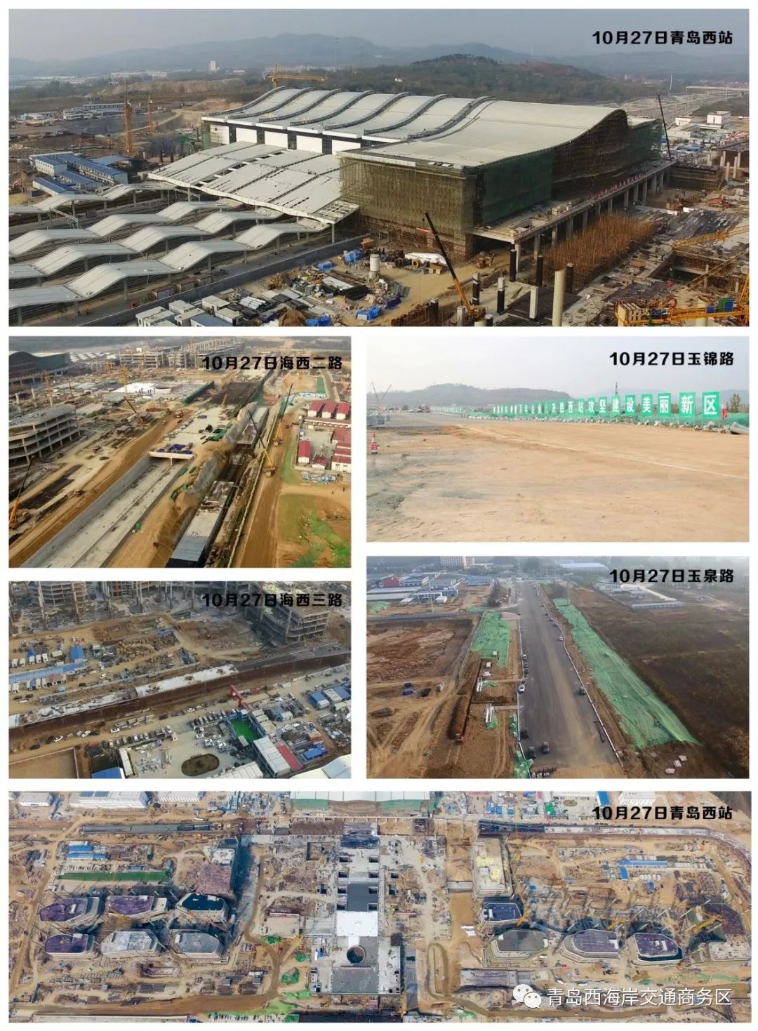 今年以来 ,西海岸交通商务区抓工期、抢进度、保安全,持续开展决战300天、200天主题活动,倒排工期、日夜决战。截至目前,青岛西站高架站房转换层施工完成总量的95%;东站房外幕墙完成总量的70%;东站房办公房间地砖完成总量的90%;东站房办公房间吊顶完成总量的90%;无柱雨、有柱雨棚屋面板大面施工已完成,剩余部分收边收口;站台石材铺贴大面积已基本完成,正进行扶梯周边部分收口。换乘中心地面和地下主体结构施工均已结束,A、B、C地块施工完成90%,正在进行室内外装修、二次结构施工,年底将于青岛西站同步建成投入使用。海西二路路基工作已完成,道路主体已完成总工程量30%,综合管廊完成77%;海西三路已完成总工程量的43%;玉泉路路基工作全部结束,道路主体已完成总工程量85%,综合管廊工程完成70%;玉锦路路基已全部完成,道路主体已完成总工程量56%,综合管廊完成64%。伴着突击50天的冲锋号角,三支突击队全面进驻现场,全力发起总攻。